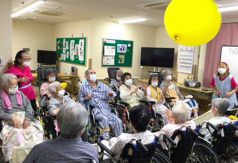 8月の笑輪会では大人気の「風船バレー」を開催しました。