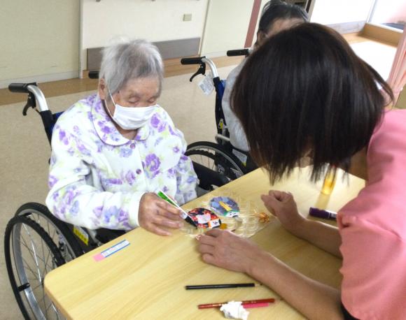 2026.02.26 「待ち遠しい春!色とりどりのお雛様」 春の訪れが待ち遠しい季節となりましたが、皆様いかがお過ごしでしょうか。 2月の笑輪会では、壁画「お雛様とお内裏様」を制作しました。 幼い頃のひな祭りの思い出に花を咲かせながら、和やかな雰囲気で作っていました。 まだ朝夜は寒い日が続きますので、入居者様への寒さ対策や感染予防を職員一同行ってまいります。 皆様も、体調を崩されませぬようご自愛ください。