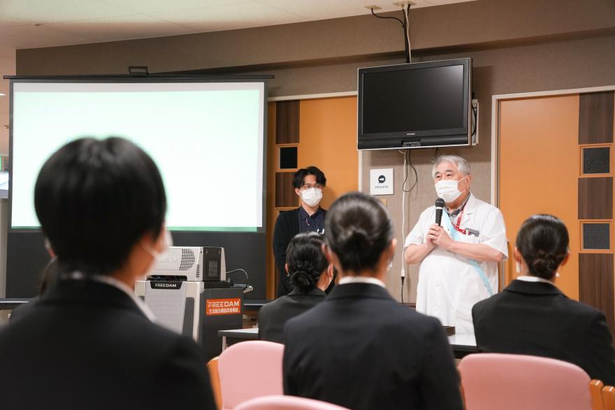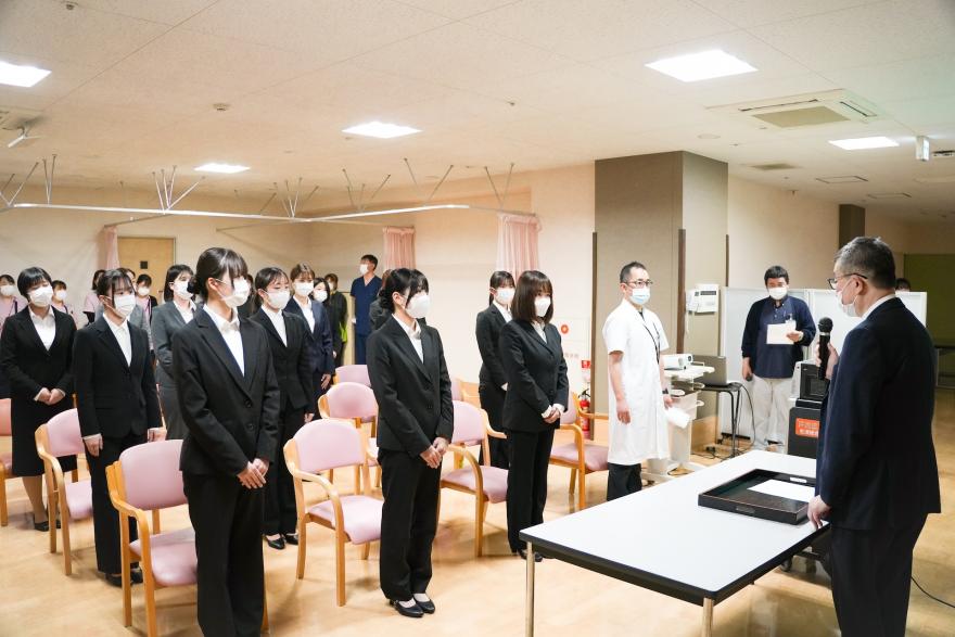 式では、理事長および院長より新入職員へお祝いの言葉が贈られました。