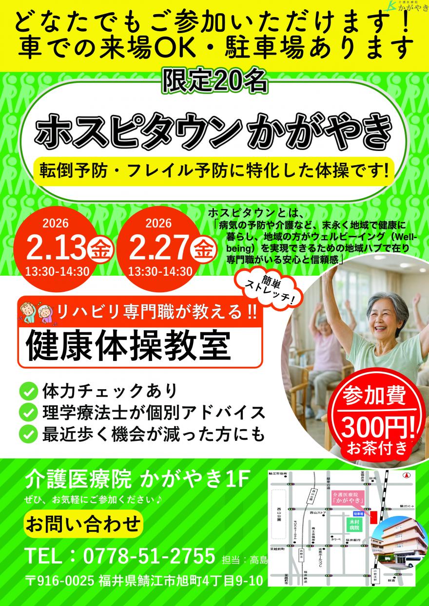 ホスピタウン かがやき-みんなで楽しく体操!健康づくり×楽しい時間をぜひご一緒に♪