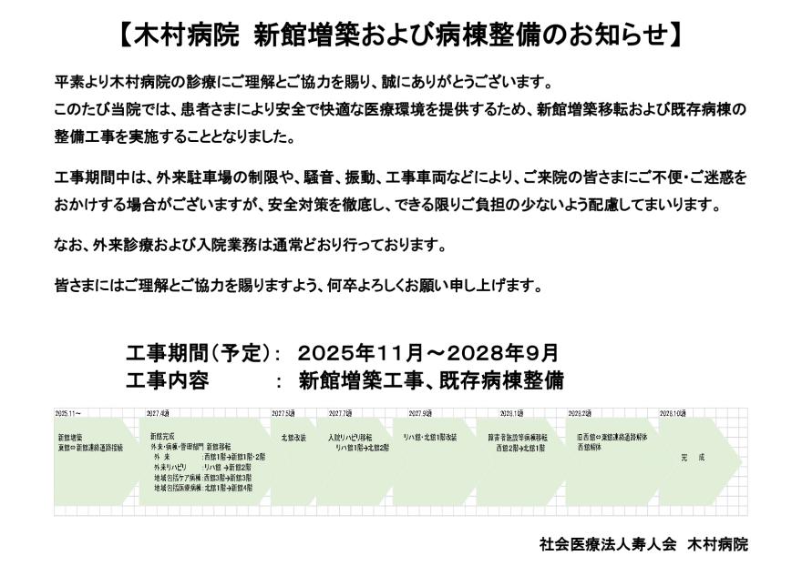 いつも木村病院をご利用いただき、ありがとうございます。
